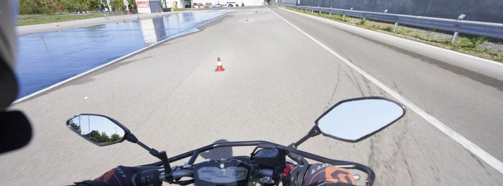 Die entscheidendste Übung, die sicherheitsrelevant ist und wo am meisten Luft nach oben ist, ist das Bremsen. Im Alltag macht man ja grundsätzlich keine Notbremsungen. Die letzte Notbremsung mit dem Motorrad ist meist schon länger her oder hat noch nie stattgefunden. Viele Motorräder besitzen auch schon eine Vielzahl an Assistenzsystemen wie etwa ABS, TraktionsWheelie- oder Launch-Kontrolle. Alles das können wir bei uns im ARBÖ-Fahrsicherheits-Zentrum besprechen bzw. üben und trainieren. Eine richtige Notbremsung mit progressivem Druckaufbau auf der Vorderradbremse, damit auch eine dynamische Lastverlagerung und eine optimale Verzögerung stattfinden können: Das ist die Übung mit dem größten Potenzial.