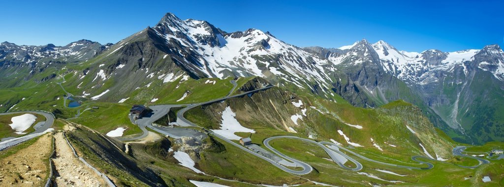 Die Großglockner Hochalpenstraße zählt seit fast 90 Jahren zu den Wahrzeichen Österreichs. Insgesamt 36 Kehren sind es auf der höchstgelegenen befestigten Passstraße Österreichs hinauf zur berühmten Kaiser-Franz-Josefs-Höhe auf 2369 m. Von dort bietet sich ein überragender Blick auf den höchsten Berg Österreichs (3798 m) und die Pasterze, den größten Gletscher der Ostalpen. Auch wartet auf der nach dem Habsburger Kaiser Franz Joseph benannten Höhe ein Besucherzentrum mit Ausstellungen. Am Weg hinauf locken zahlreiche Panoramablicke, Almen, Gasthöfe, Lehrwege und Ausstellungen zu Zwischenstopps. Nähere Infos, Tarife (Maut) und aktuelle Befahrbarkeit: