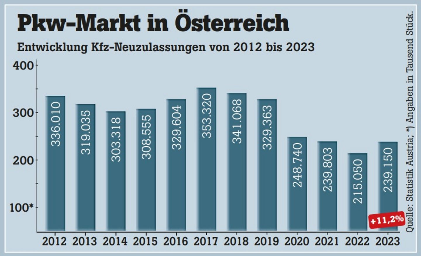 „Nach dem absoluten Katastrophenjahr 2022 konnte man zwar den Abwärtstrend stoppen, aber man sei nach wie vor weit von einem ,Normaljahr‘ mit bis zu 350.000 Einheiten in den Vor-Corona-Jahren entfernt“, so Günther Kerle, Sprecher der österreichischen Automobilimporteure. Er betonte, von einer Trendumkehr könne man daher nicht sprechen.
