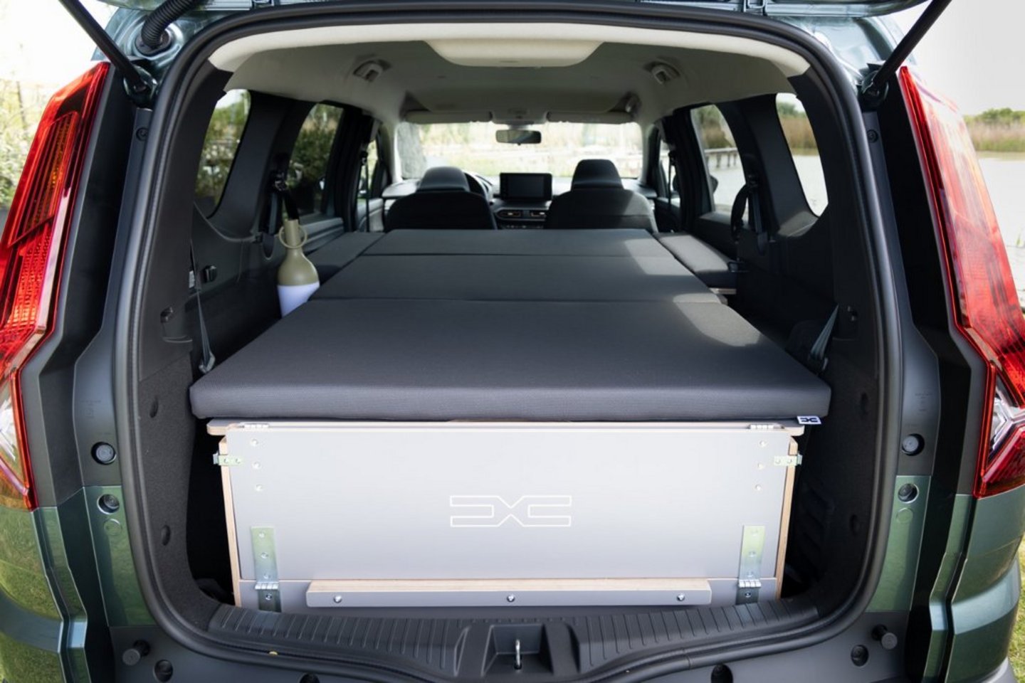 Highlight für den Jogger ist das innovative Sleep Pack, das erste Produkt aus dem InNature-Zubehörprogramm von Dacia. Die Holzbox (50 kg, 220 Liter Stauraum) im Heck zaubert in Minutenschnelle ein praktischess Doppelbett (1,90 x 1,30 m). Erster Eindruck: Höchst praktikabel und solide, der Kofferraum bleibt dabei nutzbar. Spezielle Verdunkelungsrollos lassen sich einfach in die Fenster stecken und machen den Jogger fertig zum Übernachten. Das Sleep-Pack kostet 1490,- Euro bei Kauf eines neuen Joggers. Man kann seinen Jogger damit auch nachträglich nachrüsten und wer noch mehr Platz beim Campen braucht, kann auch ein spezielles Heckzelt ordern.