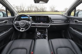 Auch das Interieur des Sportage ist mit seinen großen Bildschirmen modern gestaltet. Das Multi-Mode-TouchDisplay unterhalb der Lüftungsdüsen teilt Drucktasten und Drehknöpfe für Infotainment und Heizungsbedienung auf. Kurz: In einer Stellung übernehmen die Drehregler Lautstärke und Senderverstellung, in der anderen die Temperaturregulierung. Egal ob man es mag oder nicht: Das lässt die Mittelkonsole sehr aufgeräumt wirken.