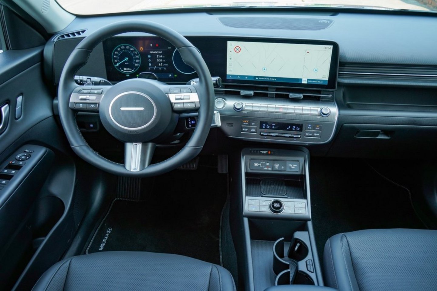 Im Laufe des Jahres werden noch zwei Elektroversionen nachgereicht – die Preise stehen noch nicht fest. Bei der kleinen Variante steckt eine 48,4-kWhBatterie im Fahrzeugboden, der Motor leistet 115 kW/255 Nm. Die ElektroTopversion hat einen 65-kWh-Akku, die Motorleistung beträgt bei gleichbleibendem Drehmoment 160 kW. Im Gegensatz zu seinen großen Geschwistern Ioniq 5 und 6 unterstützt der Kona nur 400 V Ladespannung. Von zehn auf 80 Prozent Ladestand geht es in rund 40 Minuten. Dank bidirektionaler Ladefunktion kann der Kona auch sämtliche elektrischen Geräte betreiben. Für die Benützung der Außensteckdose ist ein „Vehicle to Load“-Adapter nötig.