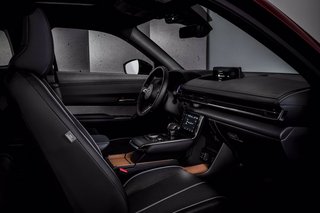 Das Antriebskonzept besteht aus einem Elektromotor in Kombination mit einem 75-PS-Einscheiben-Wankelmotor, die Systemleistung beträgt 125 kW/170 PS. Mit dem maximalen Drehmoment von 260 Nm beschleunigt der MX-30 R-EV in 9,1 Sekunden von 0 auf 100 km/h. Im kombinierten WLTP-Zyklus für Plug-In-Hybridfahrzeuge liegen die Verbrauchswerte bei lediglich 1,0 Liter Benzin und 17,5 kWh Strom je 100 km. In CO2-Emissionen umgerechnet entspricht das 21 g/km nach WLTP.