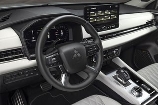 Motorisch gibt es nur einen Plug-inHybriden. Die Kraft kommt entweder von einem akustisch zurückhaltenden 2,4-l-Vierzylinder mit 100 kW/136 PS oder einer 22,7 kWh fassenden Batterie, die nach WLTP bis zu 86 km Reichweite ermöglichen soll. Bei sensiblem Gasfuß sind gewiss 100 km drin, da haben die Japaner tief gestapelt. Der Hybridantrieb kann an der Vorderachse seriell oder parallel für Vortrieb sorgen, die Hinterachse läuft rein elektrisch. Auf diese ist Mitsubishi besonders stolz. Im Gegensatz zu den Mitbewerbern, die oft nur einen schwachen Motor als Anfahrhilfe verbauen, leistet der im Outlander gleich ganze 100 kW. Gleichzeitig kann an der Hinterachse das Drehmoment zwischen rechtem und linkem Hinterrad verschoben werden, was nicht nur für Fahrdynamik, sondern auch für Stabilität sorgt. Die Systemleistung beträgt 306 PS, denn die E-Maschine an der Vorderachse wirft ebenso 85 kW ins Rennen.