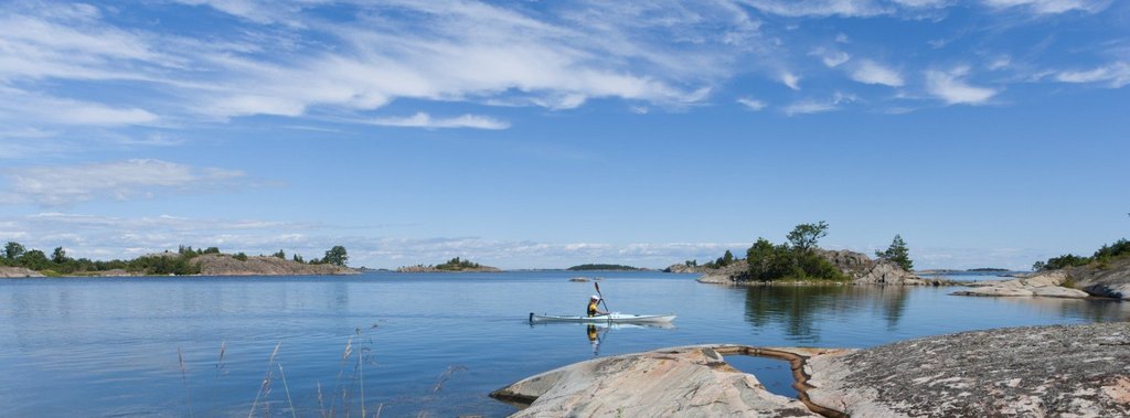 Der der schwedischen Hauptstadt Stockholm vorgelagerte Skärgård besteht aus rund 30.000 Inseln, nur ein Fünftel der Fläche (6000 Quadratkilometer) entfällt auf Land. Jakob Rudberg kennt ihn wie seine Westentasche. Mit seinem Outdoor-Anbieter „Get Out Kayak“ offeriert er an drei Standorten Paddel-Touren durch diese Welt zwischen Land und Wasser – von einbis fünftägig, inklusive Übernachtung in der Wildnis. „Das Baltische Meer hier ist flach und salzarm. Es gibt keine Gezeiten, keinen Tidenhub, keine Strömungen und kaum Wind, dafür geschützte Buchten allerorts. Eine ideale Spielwiese für Kajakfreunde!“ Der junge Mann liebt es, mit seinen Gästen tagelang durch die Wildnis zu paddeln. „Je weiter draußen Richtung offenes Meer, umso einsamer wird es. Der äußere Skärgård ist nahezu unberührt. Natur pur! Hier kannst du tatsächlich die Stille hören.“