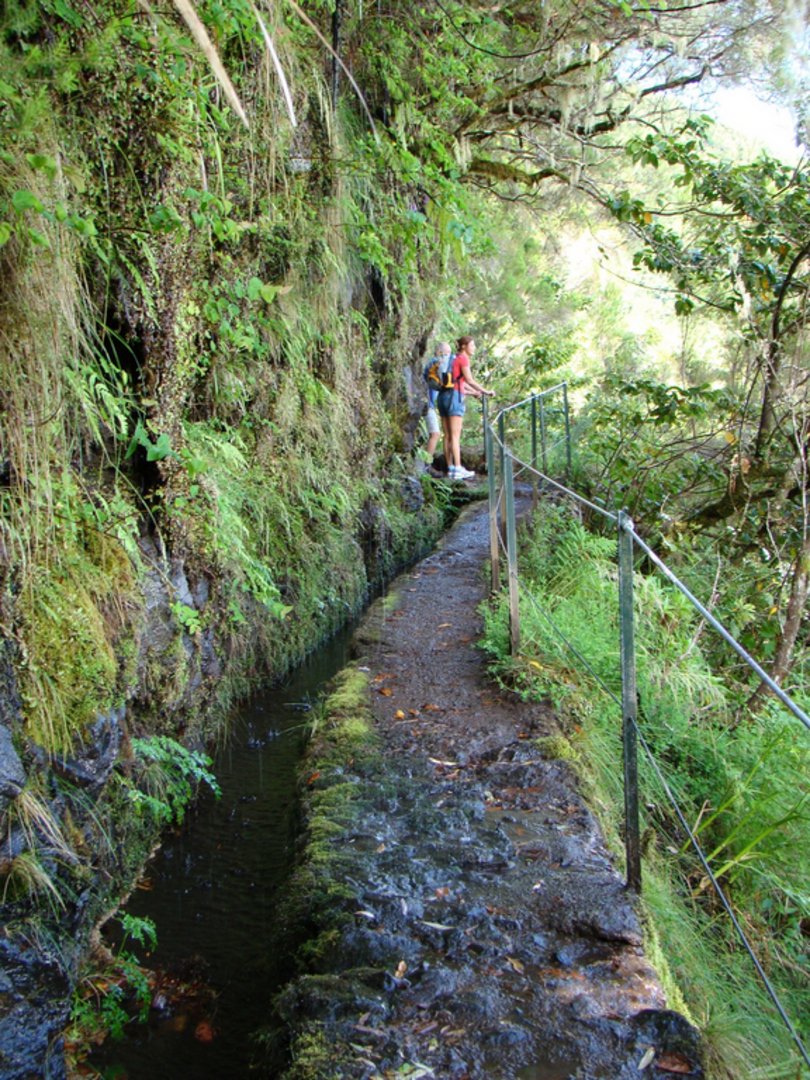 Stets rauscht das Wasser neben dem Wandersmann, oft enden die LevadaWege bei einem spektakulären Wasserfall oder führen durch kilometerlange, finstere Tunnels. Das macht Spaß! Entlang der Bewässerungskanäle offenbart sich die Pflanzenvielfalt der Insel: Lilien, Eichen, Laurazeen, Lorbeerbäume, Hortensien. Schwindelfreiheit ist allerdings gefragt, denn oft verläuft der Weg auf einer schmalen Mauer über dem gähnenden Abgrund. Doch für Höhenängstliche gibt es einen erfrischenden Ausweg: Schuhe ausziehen und im Wassergraben weiter waten.