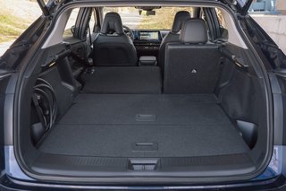 Das extravagante Styling setzt sich auch innen fort: Der minimalistische Look und die gebotene Ästhetik sorgen für ein loungeartiges Wohlfühlambiente – gefällt! Dazu verwöhnt der Ariya mit großzügigen Platzverhältnissen in beiden Sitzreihen, und mit der elektrisch verschiebbaren Mittelkonsole (Evolve) lässt sich der Platz zudem auch noch variabel anpassen.