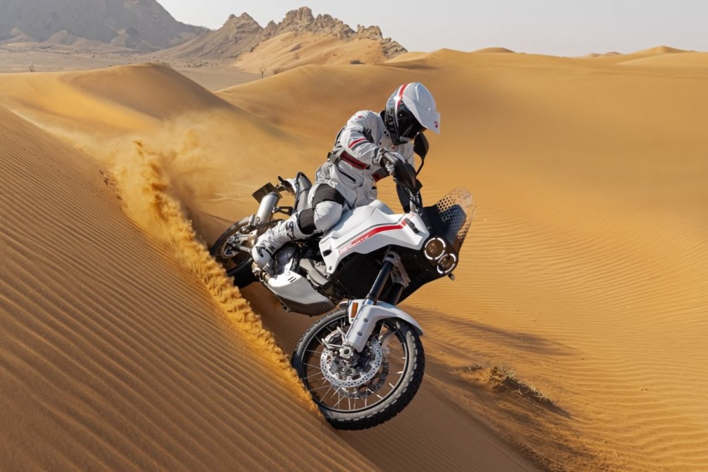 Ducati. Die Italiener waren diesmal besonders fleißig und schütten ein Füllhorn an neuen Modellen aus. Besonders interessant ist die Streetfighter V2 als kleine Schwester der V4. Mit 955 ccm, 153 PS und 200 Kilo vollgetankt positioniert sie sich am Schnittpunkt von Straße und Rennstrecke, ist mit € 19.595,– allerdings auch preislich abgehoben. An ambitionierte Abenteurer richten sich die Italiener mit der neuen DesertX. Die 110 PS starke und € 18.395,– teure V2-Reiseenduro kombiniert lange Federwege und ein 21-ZollVorderrad mit einem Style, der an Dakar-Bikes der Achtzigerjahre erinnert.