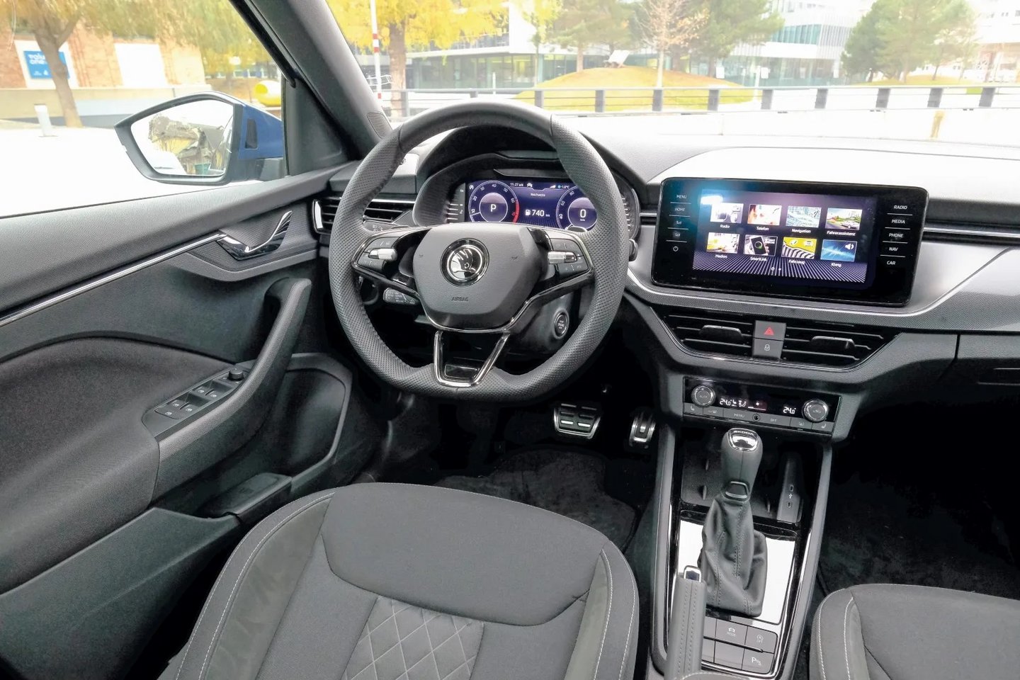 Verwöhnen kann auch die StyleAusstattung unseres Testwagens, die komfort- und sicherheitstechnisch alle Stückerln spielt. Serienmäßig mit dabei sind auch die Simply-Clever-Goodies wie Regenschirmfach in der Fahrertür, Eiskratzer in der Tankklappe und ausklappbarer Einfülltrichter fürs Scheibenwasser.