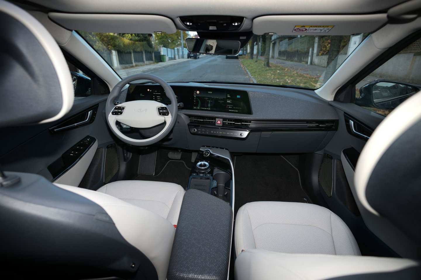 Findet man eine entsprechend potente Ladesäule, so ist der 77,4 kWh fassende Akku in 18 Minuten von 10 auf 80 Prozent Ladestand. Voll geladen soll es der Kia auf 506 km Reichweite laut WLTP bringen, bei knackigen Wintertemperaturen unter dem Gefrierpunkt sind uns davon 300 übrig geblieben – die aber auch bei Autobahntempo und voll aufgedrehter Heizung. Bei genannter Situation kann der Kia den Vorderradantrieb auch mechanisch vom Motor abkoppeln, der sonst wie ein Dynamo weiterliefe. In Sachen Heizung hilft eine serienmäßige Wärmepumpe beim Stromsparen.