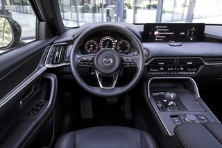 Sonst ist das Fahren eine Wohltat, so man sich auf der Langstrecke befindet. Kurviges Hinterland ist zwar möglich, aber dann doch mehr ein Irrtum. Länge läuft eben. Die Sitze sind toll, die dargebrachten Materialien von der feineren Sorte, die Bedienung rätselfrei und dank Dreh/Drücksteller oder Amazons Alexa lassen sich viele Funktionen auch während der Fahrt bedienen. Das Platzangebot ist vorne wie auch in Reihe zwei opulent, ganz hinten sollte man sich hingegen keine Wunder erwarten, schließlich ist der CX-80 kein Van. Für kurze Strecken geht es allemal, zumeist wird die letzte Reihe ohnehin in der Versenkung schlummern und der enorme Kofferraum darüber genutzt.