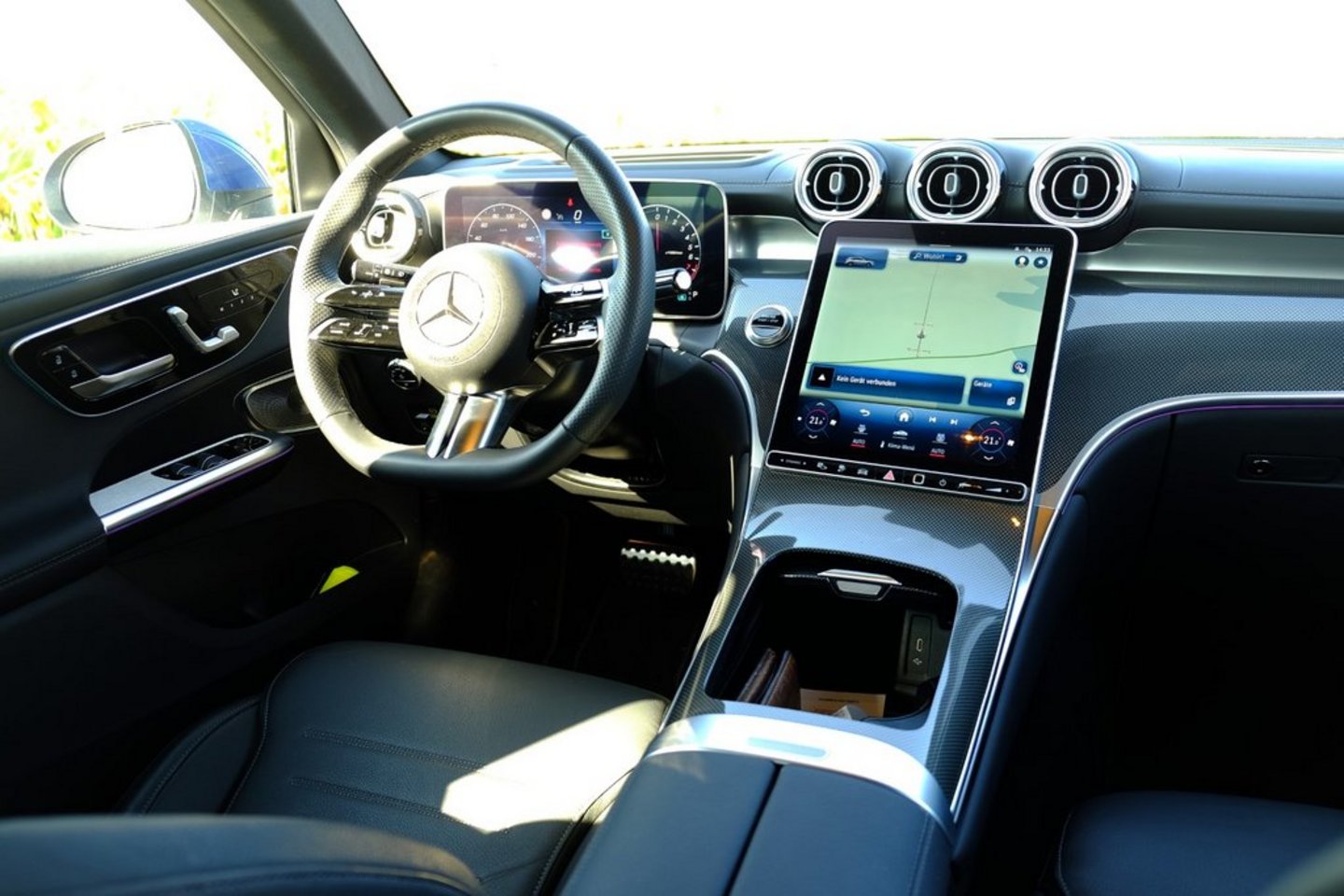 Trotz seiner rund 2,3 Tonnen fährt sich der GLC angenehm frisch und locker, die serienmäßige Luftfederung kann dabei von komfortabel bis sportlich. Dynamik-Plus: In engen Kurven spitzt die Hinterradlenkung (beim Plug-in ebenfalls Serie) das Handling etwas zu. Die Rekuperation erfolgt in Stufen (auch adaptiv möglich) und reicht von Segeln bis One-Pedal-Fahren.