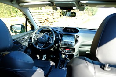 Überhaupt brennt der Forester ein Technikfeuerwerk ab: Neben dem bekannten Eye-Sight-System kommt das Japan-SUV nun mit SRVD (Subaru Rear Vehicle Detection), Rückfahrwarner samt Bremsfunktion, Side View Monitor und – erstmals in Europa – dem Driver Monitoring System. Letzteres basiert auf einer Gesichtserkennung, dass nicht nur bei Müdigkeit warnt. Es erkennt auch, wer gerade hinter dem Steuer sitzt und kann so die gespeicherte Sitzposition sowie die Spiegeleinstellung individuell aufrufen.